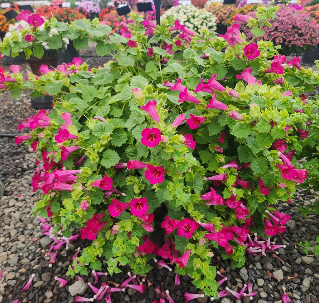 Discover the versatility of Lofos Compact in Rose and White! These compact varieties grow to approximately two feet long, boasting an abundance of smaller flowers concentrated on the plant's surface. Ideal for creating stunning cascades in hanging baskets or acting as dynamic spillers in mixed container plantings, they also adapt beautifully to trellising, even in a simple tomato cage. Enjoy their vigorous growth and self-cleaning nature, eliminating the need for deadheading.CARE GUIDE