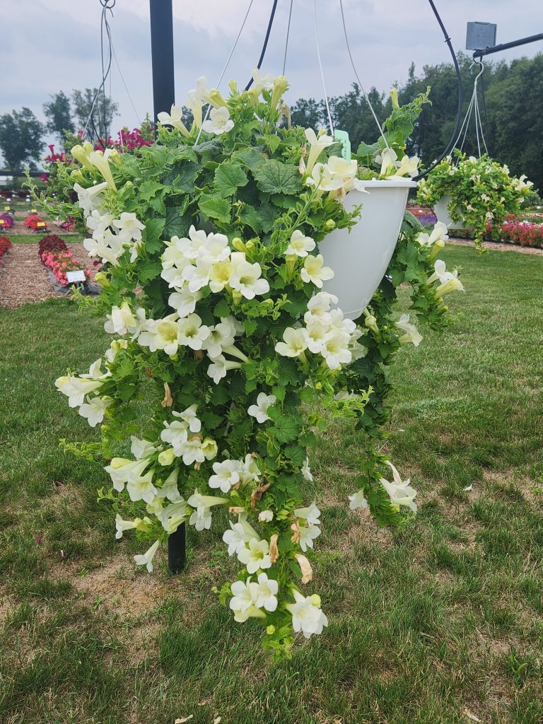 These Lophospermums have large trumpet-shaped flowers that bloom throughout the season. Lofos are self-cleaning and have a vigorous, trailing growth. Perfect for hanging baskets! Also, these plants can be trained on a trellisCARE GUIDE