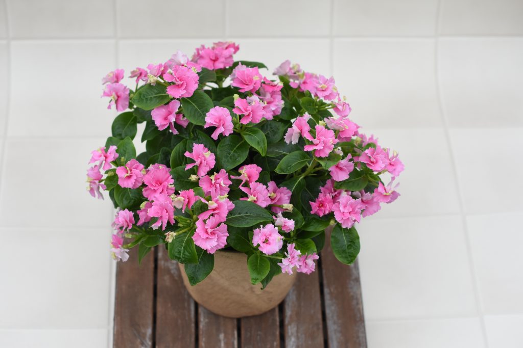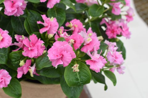 Soiree® Flamenco aren’t like any other vinca. They put on a fashion show in your beds, baskets, and containers with fringed, ruffled petals and striking bi-colors. Perfect for summer, they are happy in warm conditions. These plants keep their habit all summer long, with no leggy branches and tons of flower power.CARE GUIDE
