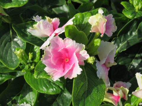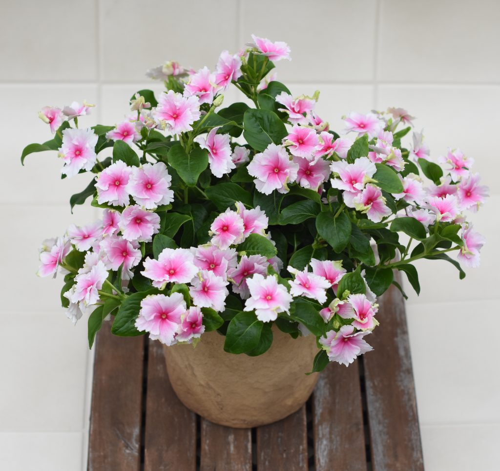 Soiree® Flamenco aren’t like any other vinca. They put on a fashion show in your beds, baskets, and containers with fringed, ruffled petals and striking bi-colors. Perfect for summer, they are happy in warm conditions. These plants keep their habit all summer long, with no leggy branches and tons of flower power.CARE GUIDE