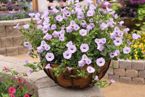 A stunning choice for adding vibrant color to shady areas, the Summer Wave Trailing Torenia series is prized for its lush, vigorous growth. These heat-tolerant plants thrive throughout the summer, producing a continuous display of trumpet-shaped blooms all season long. With a fantastic trailing habit, they are perfect for hanging baskets, containers, and as groundcover in borders. Exceptionally low-maintenance, they are both self-cleaning and well-branched, ensuring a full, colorful cascade with minimal effortCARE GUIDE